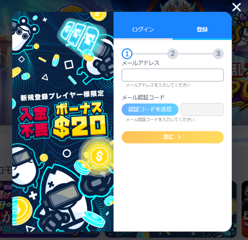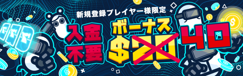 登録すればタダで貰える軍資金。通常20ドルがこのページ限定で40ドルに上乗せ!