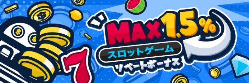 なかでも、リベート率は最大1.5%、キャッシュバック率5%~10%という高設定。賭け条件1倍と、きめ細やかなサービス内容です。