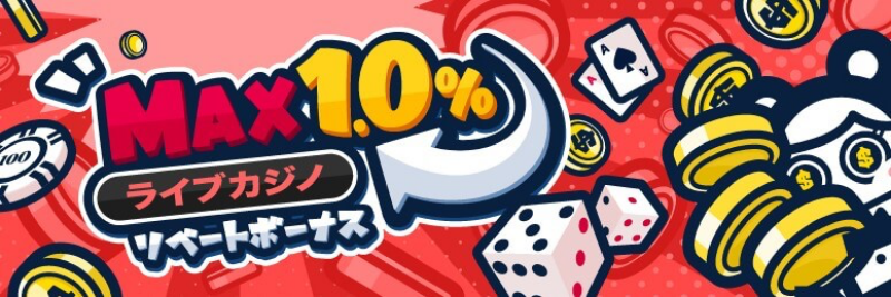 ライブカジノで遊ぶだけ!勝っても負けても貰えるボーナス。ベットすれば最高1.0%のリベートボーナスが獲得できます。