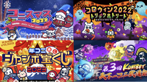 連休や季節にあわせたイベントは、コニベット利用者だけが稼げるプロモーションとなっています。